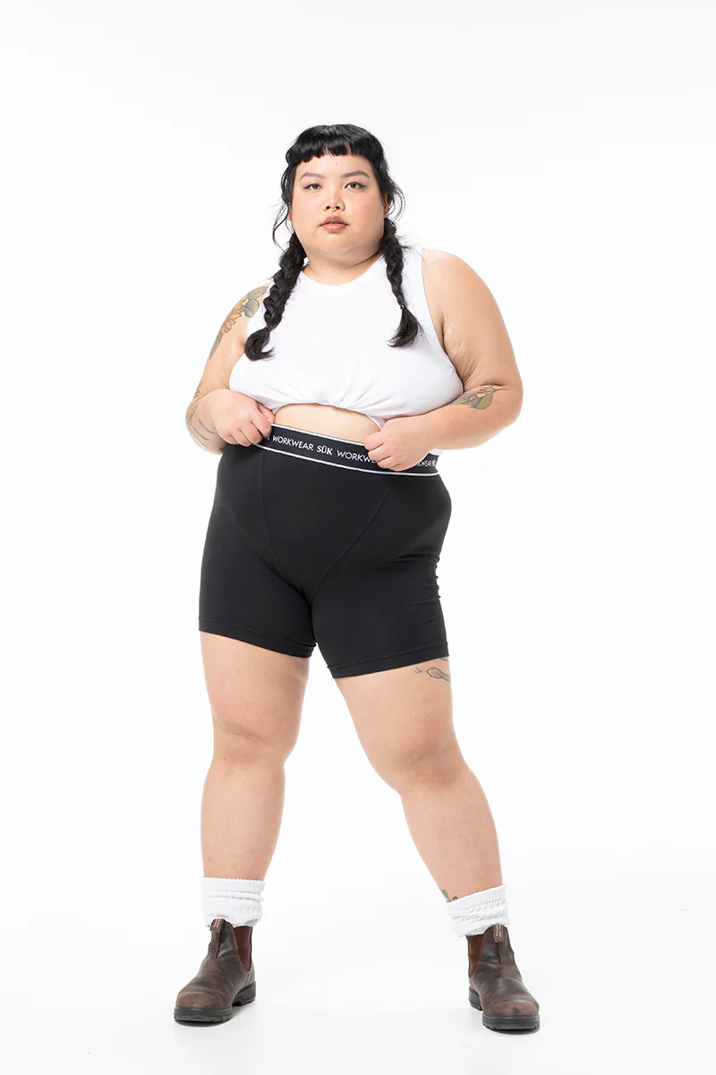 A snug pair of boxers that are designed to come up high and stay there. Made from quality cotton Lycra with the softest elastic waistband. With a natural fibre cotton gusset, you can wear this garment with only a pair of boots and feel supported and fully breathable where it counts. Wear as underwear or a pair of comfy short shorts - the freedom is yours.
